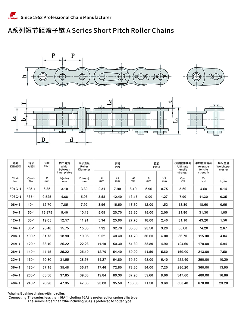 滚子链是一种用于传送机械的动力链条,是链传动的一种重要类型,广泛应用于工业、农业机械,畜牧业等机械设备中,其中包括印刷机、汽车、摩托车、自行车、石油钻探、设备驱动等。
