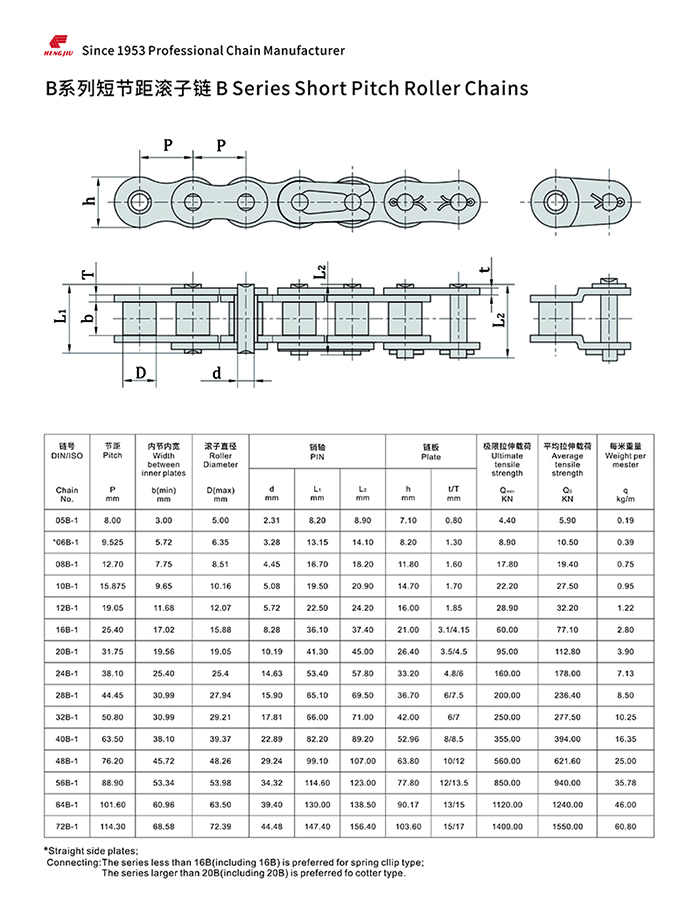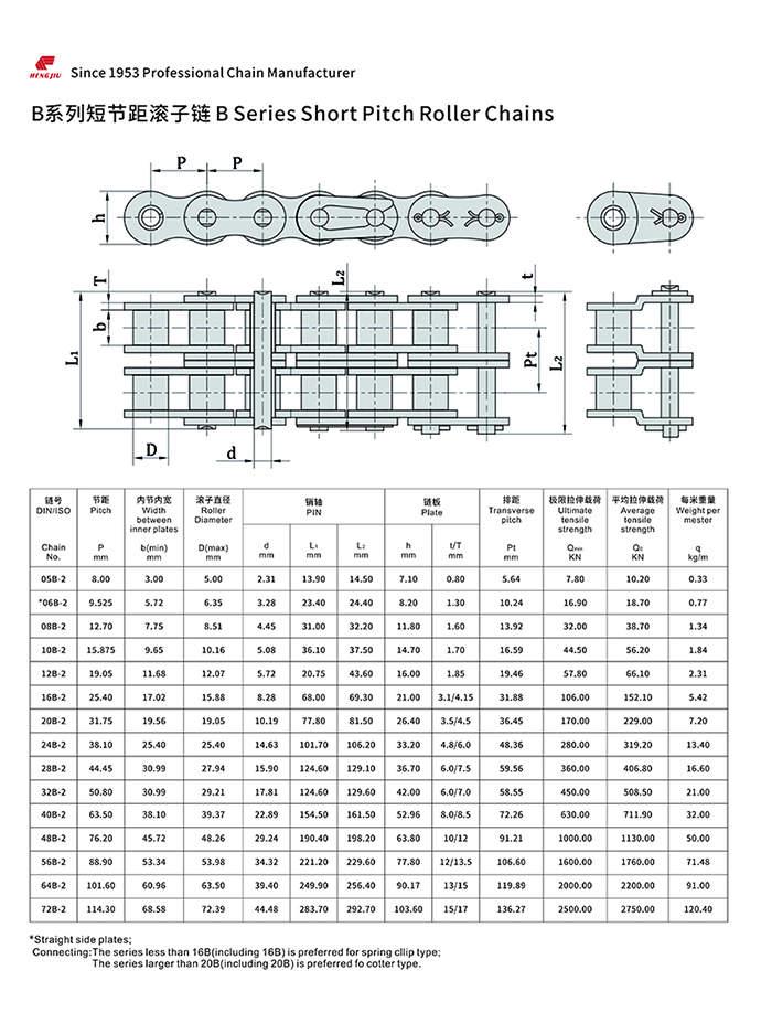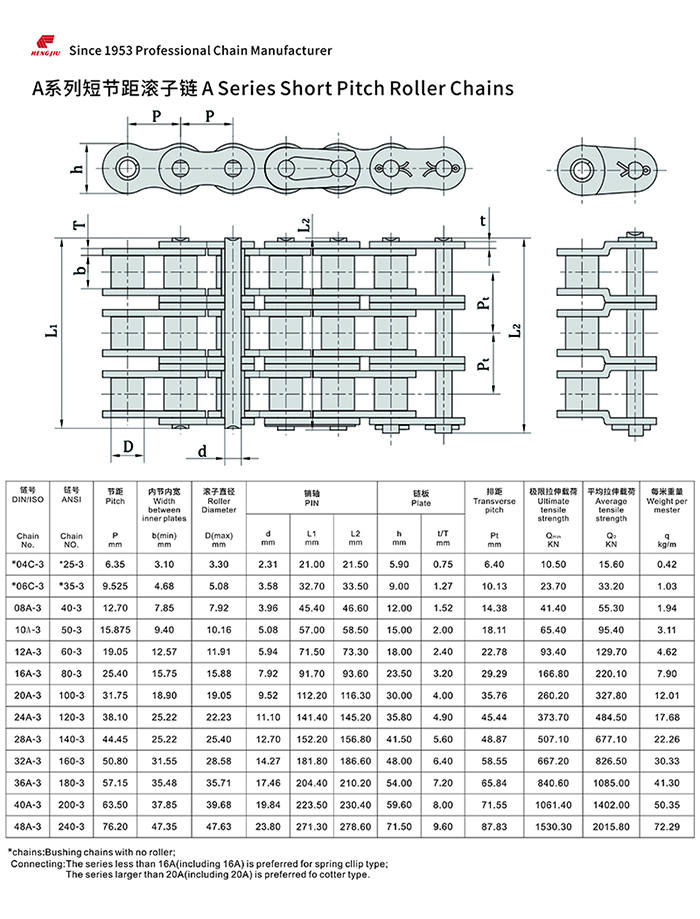 97国际集团的短节距滚子链以其高强度和耐疲劳著称,尺寸完全遵循ANSI、ISO和BS标准,可组装成单排、双排和多排,以适用所传动的功率和不同的配置空间。