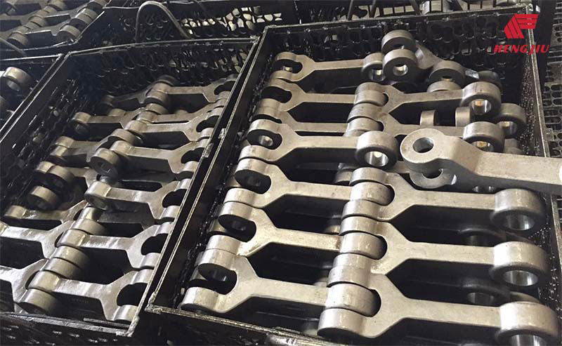 铸造链是根据不同的技术标准和使用要求,采用不同元素配制材料进行铸造而成,铸造的链节抗拉强度高。铸造链条结构简单,使用范围较广,主要应用污水处理设备,制糖设备输送,钢厂输送机等工业领域。