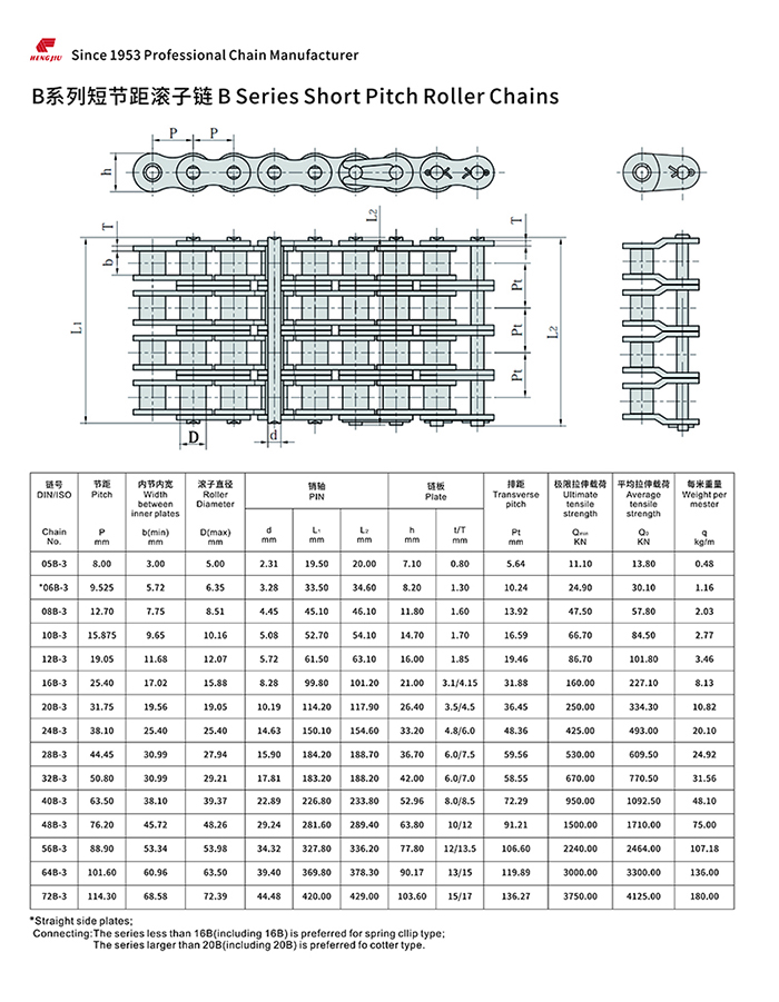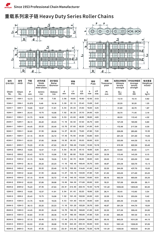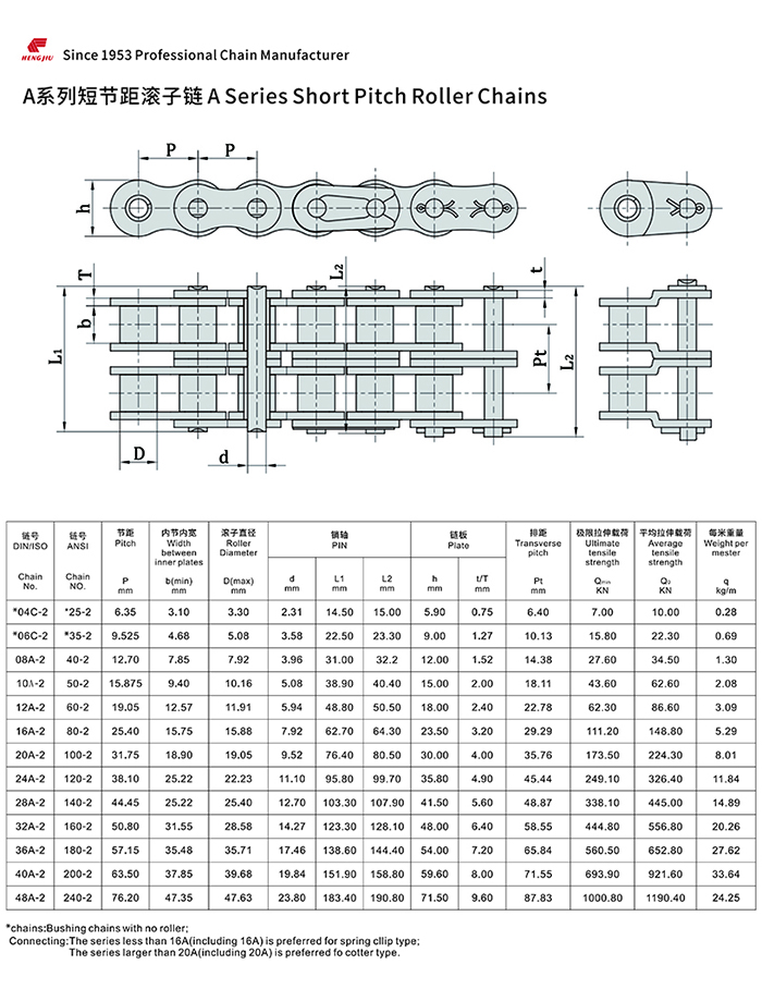 97国际集团的短节距滚子链以其高强度和耐疲劳著称,尺寸完全遵循ANSI、ISO和BS标准,可组装成单排、双排和多排,以适用所传动的功率和不同的配置空间。
